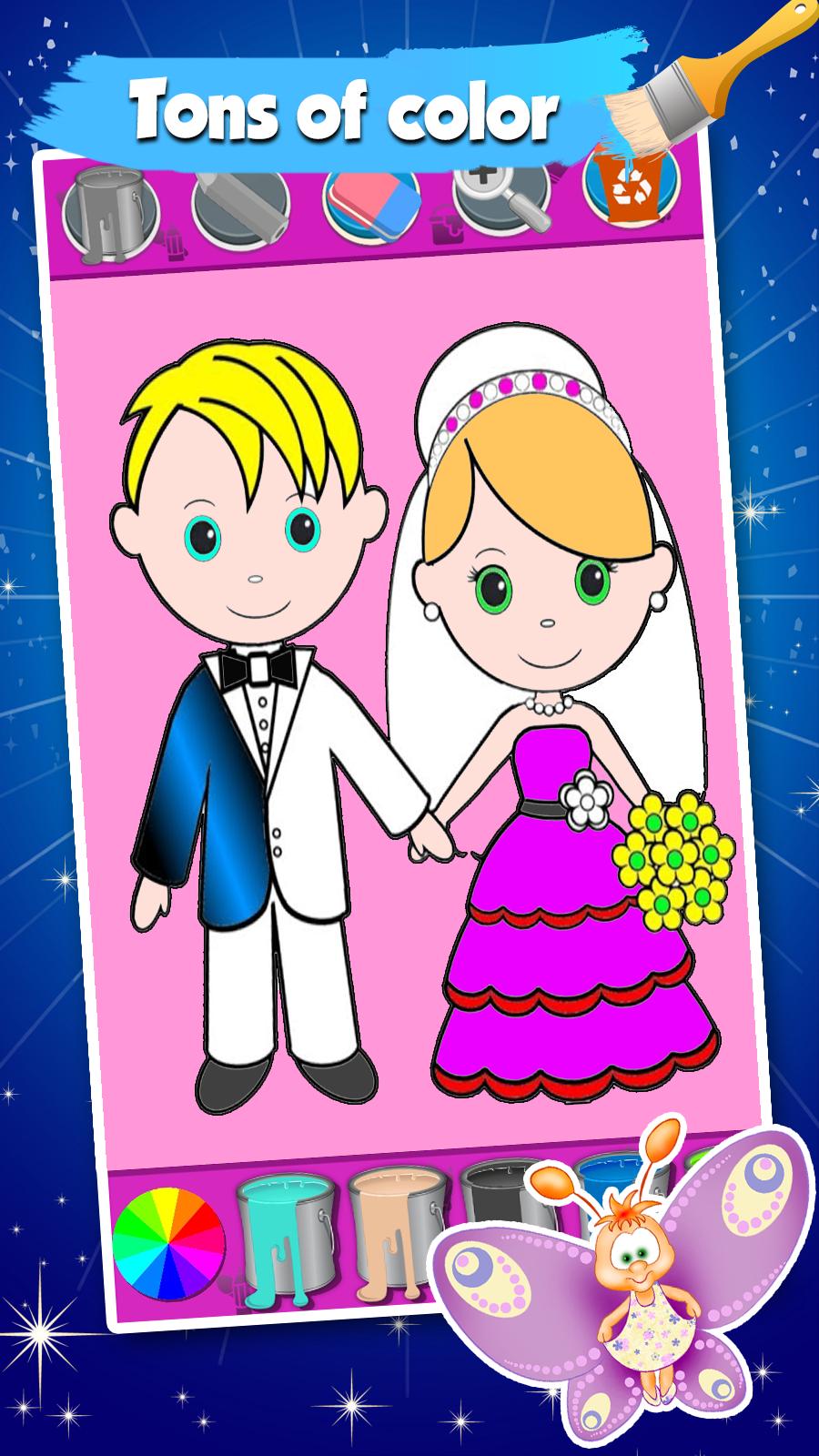 Bride And Groom Wedding Coloring Pages Game It is a wonderful coloring application that enables you to paint bride and groom drawings, cosmetics and many things .