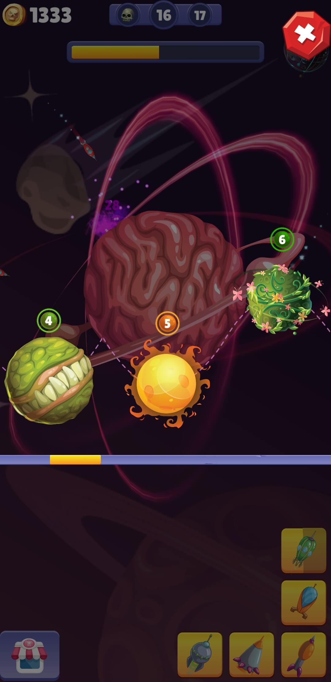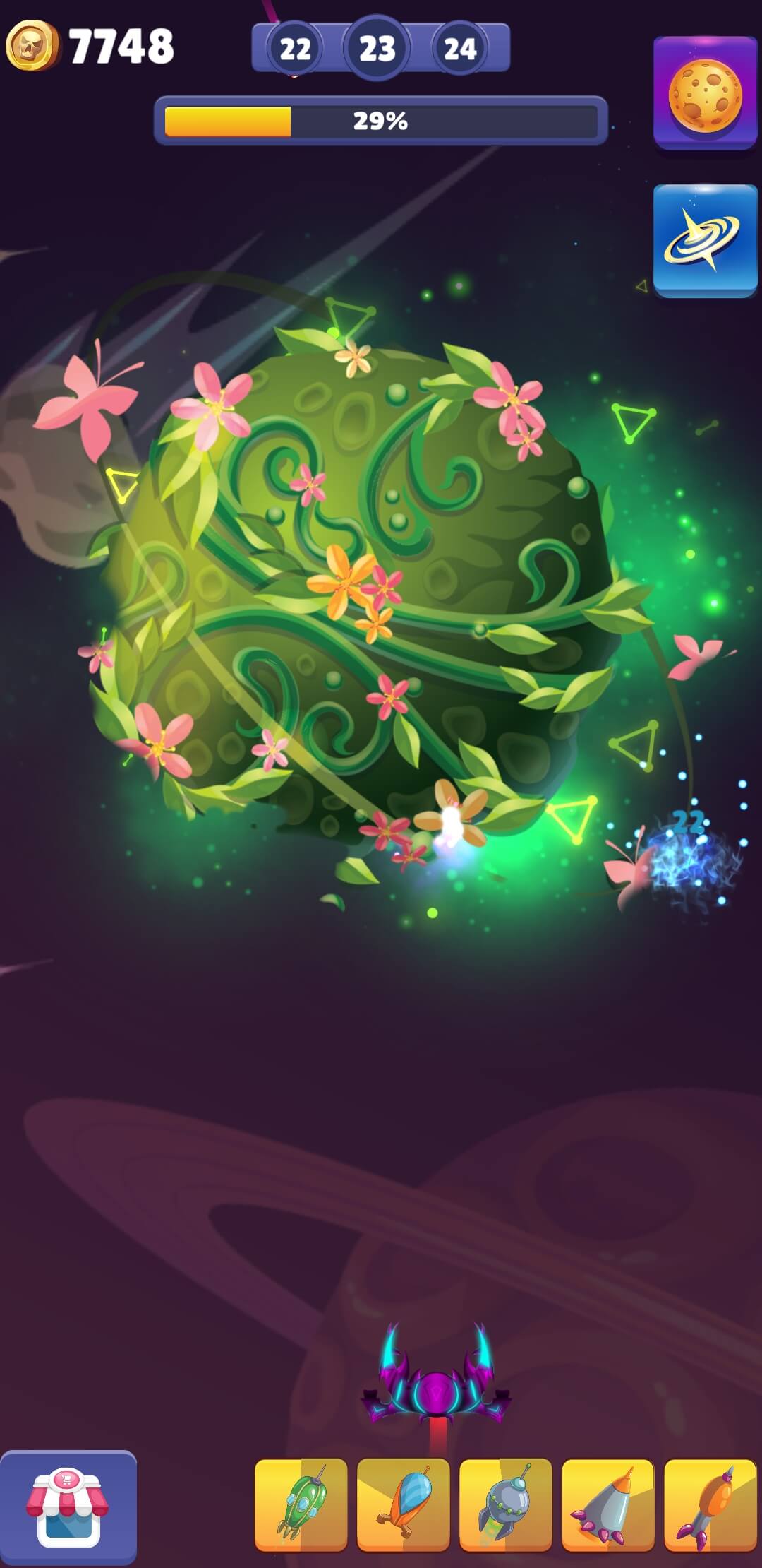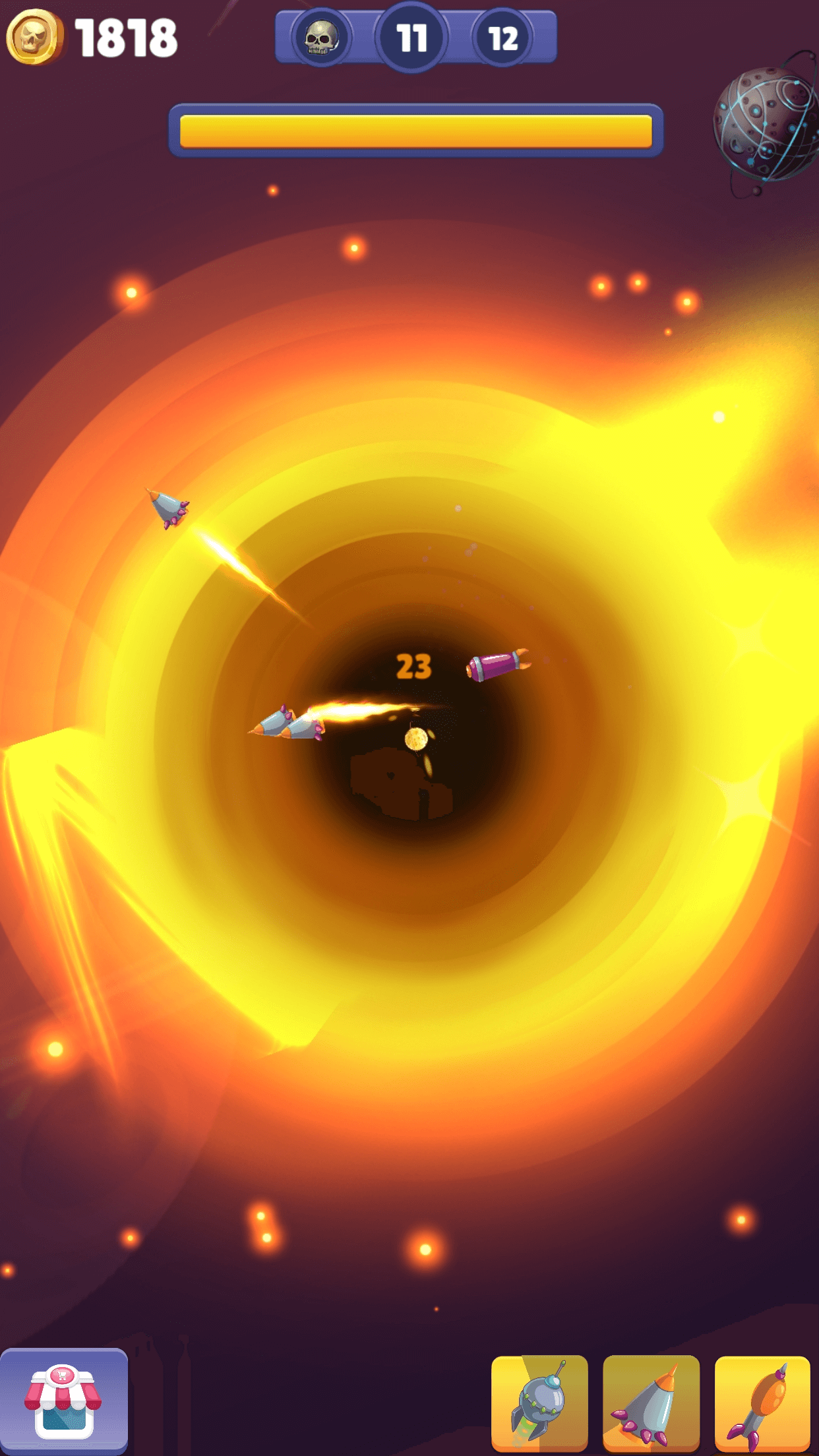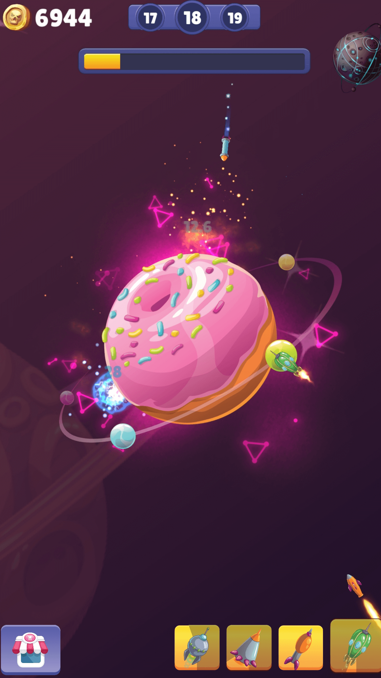 Upgrade your rockets and Tap power to be even more powerful. Go through dozens of cute planets, like Sushi, Cookie, Heart, Moons, Sun.