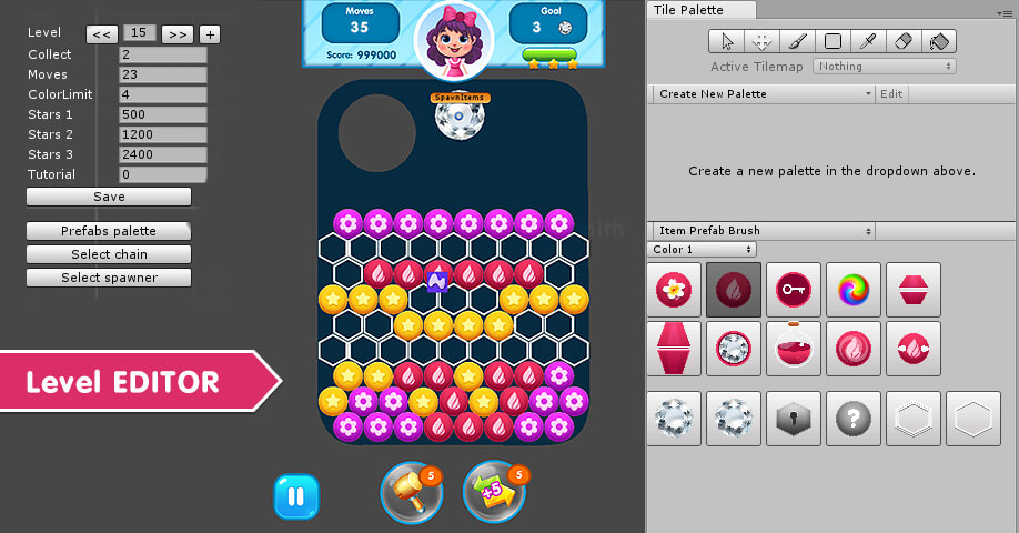 Match 3 Kit Jewelry is unique match 3 complete project for Unity + EDITOR.Â