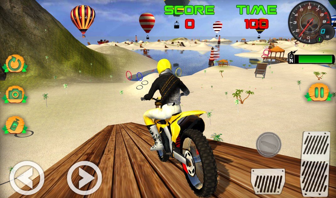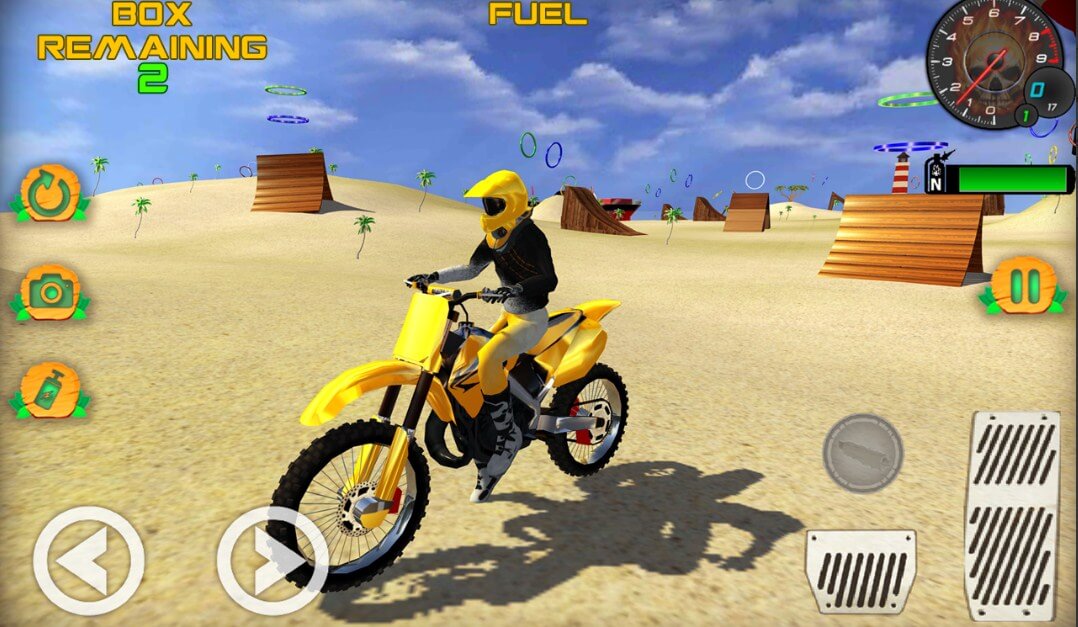 Welcome to racing moto: beach jumping simulator game this is just a wonderful racing motos 3d game. This is jump bike racing game in which you have to do bike stunt and take all the check points on the beach and roads in given time to complete the level. Might be you ever played many motorcycle games but this fast riding motorbike racing game is just outstanding with wonderful graphics and outstanding 3d environment. This is all about stunts make different stunts like air stunt, off road stunts, jumping stunts and riding stunts. Earn points by jumping and take all the check points to compete others. Impossible tracks are waiting for you in this racing moto bike riding game this game has a multiple challenges, crazy bike stunts, race stunts and many more show you expert skills in this beach bike stunt motocross racing game.Â