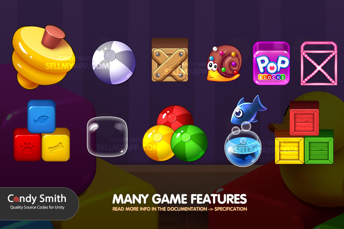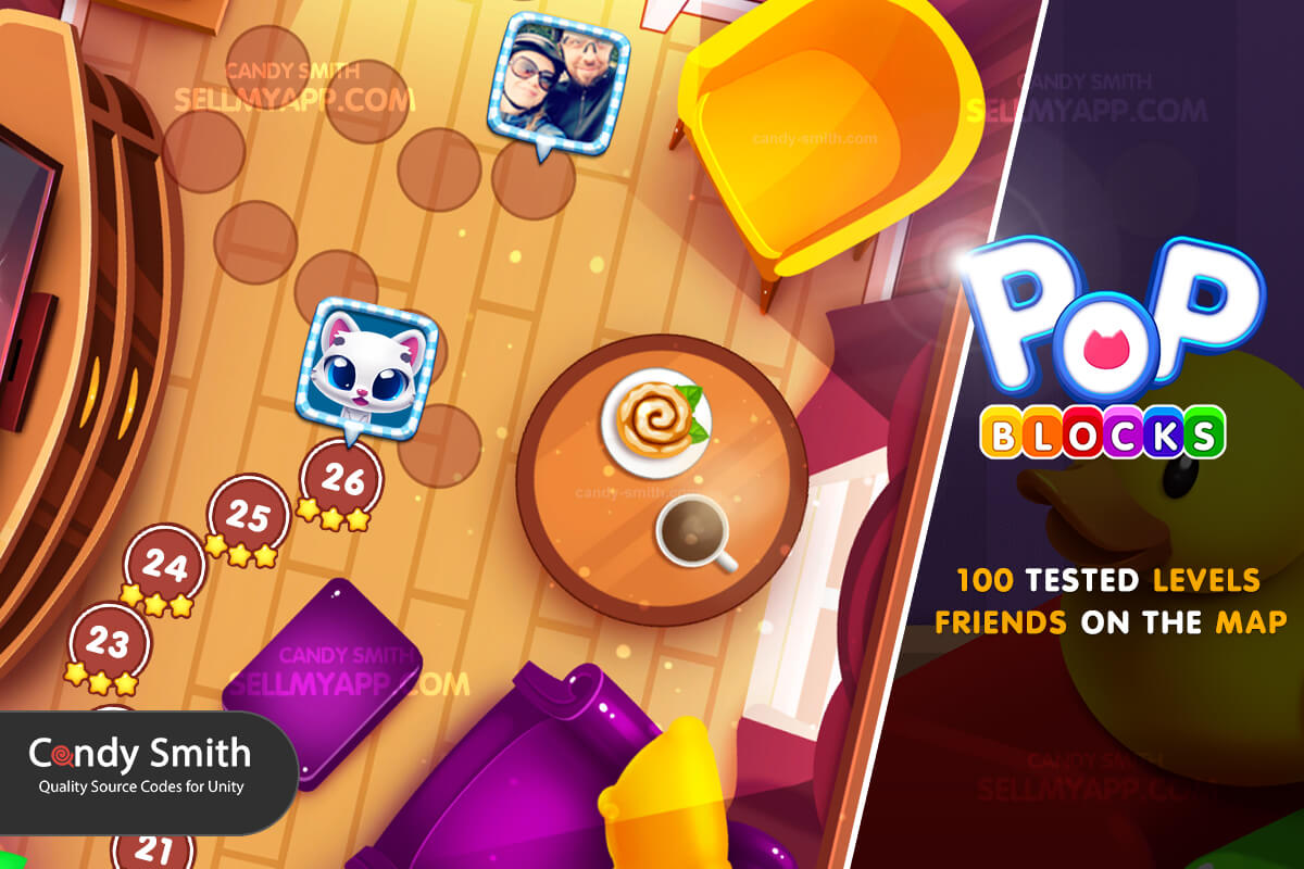 POP BLOCKS Tap Match Kit is the most complete tap match tool for Unity. DOCUMENTATION | WebDEMO | APK | Recommended Unity 2020 or higher. Features • Facebook implemented – leadboard, friends on the map • Easy-to-Use editor – create your unique levels without programming knowledge. • Optimized for Mobile – UI resizes to all types and resolutions of mobile devices. • 100 tested levels – created for preview. Use them as starting point for your game. • Mini Game (Bonus Spin) and Daily Rewards (integrated Anti-time cheat) • Dynamic Reskin – change in one place, change everywhere! • Game map.PSD for FREE. You often ask us for the source of the game map. We are happy to provide you with this! • Unity IAP’s purchases integrated • 3 types of map settings – classic scrolling map, level selection grid, or disable map (allowing the player to move to the next level bypassing the level selection). • Ads Monetization – Unity Ads, Admob, Rewarded ads. • Game tutorials – visual and tabs • Life Shop – to coins or watch the video ad. • Visual Tutorial’s editor – tutorial’s customization • AI tester – collects statistics for further balancing of your levels • Shortcuts for level testing and fast scene opening • Target editor – set your own targets • In-game privacy policy included • Rewarded video • Coins Shop • Booster Shop • Localized Price Release notes 1.10: Fixed: Game stuck sometimes after skip win Fixed: life shop reward coins representation Fixed: daily reward date issues