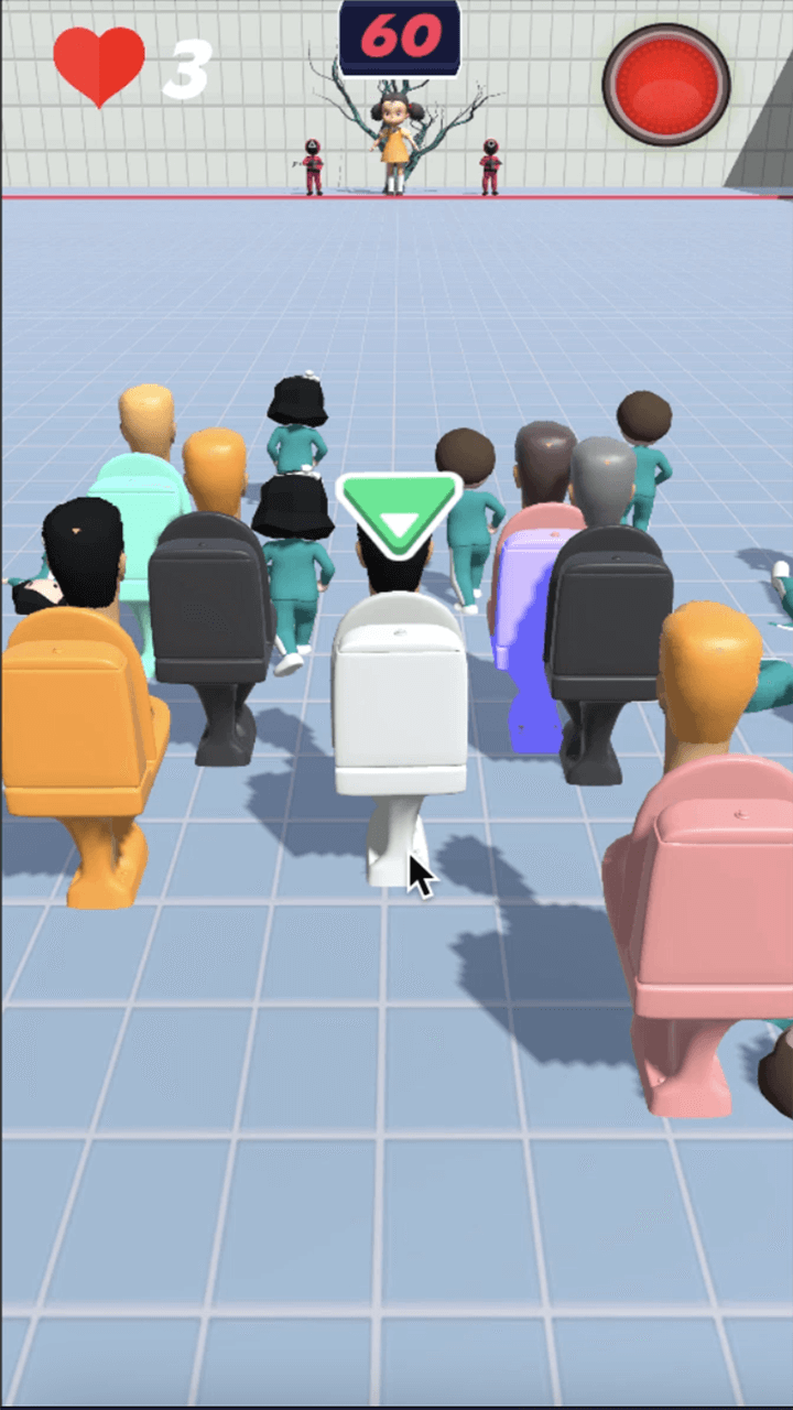 Competitors run in the toilet yard to reach a line The end before the red light turns on.