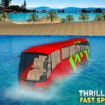Oh yes! Water Surfer Floating Bus 3D is here for your unlimited water fun. You have enjoyed boat riding, Jet-ski surfing, rafting, yacht riding and ship sailing. Now it’s time to enjoy something different and new. Your bus will sail and surf above the seawater in sea racing. People have used to travel through bus on land and boat in water but now we have amphibian bus. You can enjoy bus drive on land and boat sailing in water.